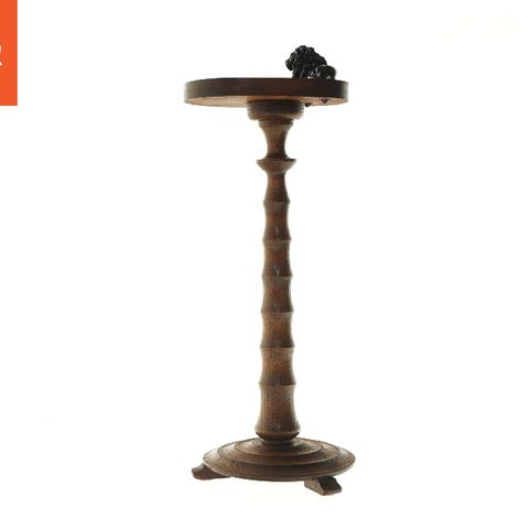 Gammel pedestal i bejdset egetræ med messing beslag.