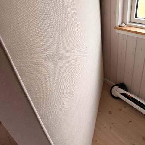 Den kunne ikke komme op til soveværelset på 1. sal, så en ny seng må anskaffes. Hurtigt salg foretrækkes, da den nu står på højkant i stuen.