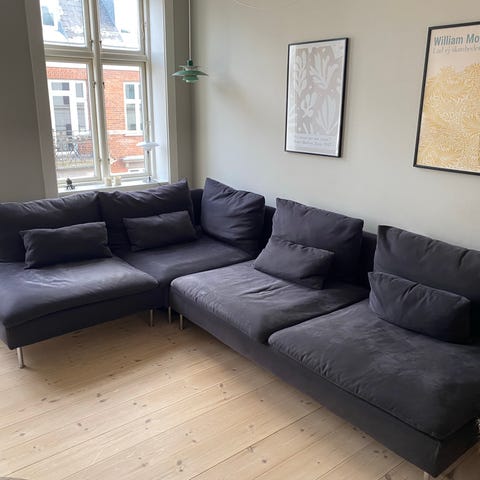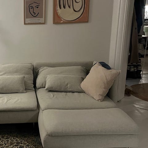 To- personers sofa med chaiselong i farven Gunnared Beige.