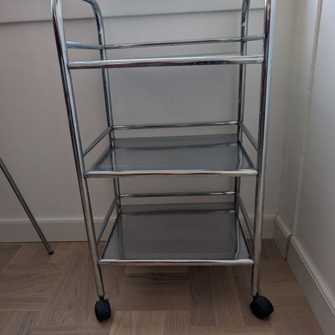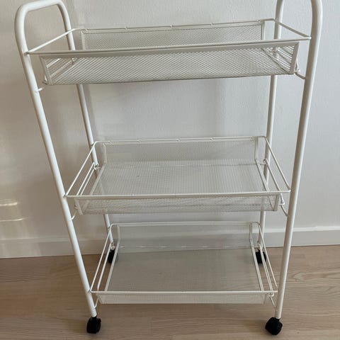 Hvid metal rullevogn . D 12. B 40. H 70cm