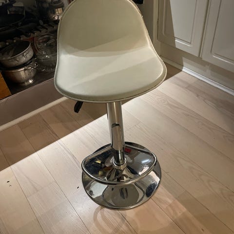 Barstol / høj skammel i metal med sæde af læder sælges.