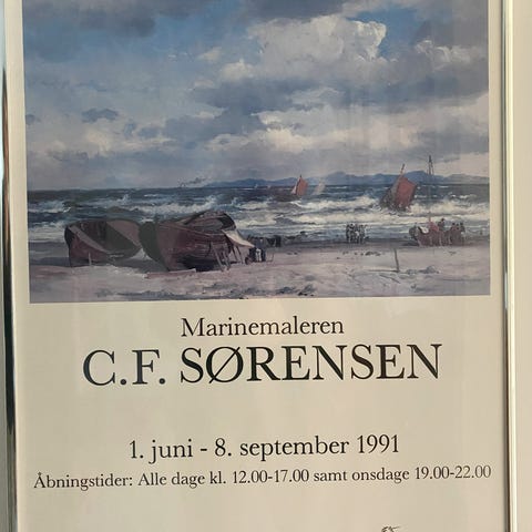 Tryk/plakat med motiv af havet ved Tisvilde fra år 1997. Indrammet i en sølv ramme med patina.