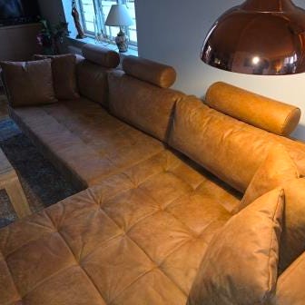 Hjørnesofa i læder, chaiselong med elektrisk udtræk.