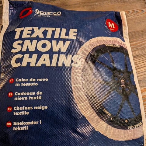 Snesokker til bilen i stedet for kæder. Brugt en enkelt gang. Passer til de fleste biler: se listen billede 3.