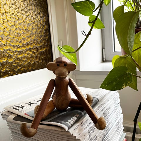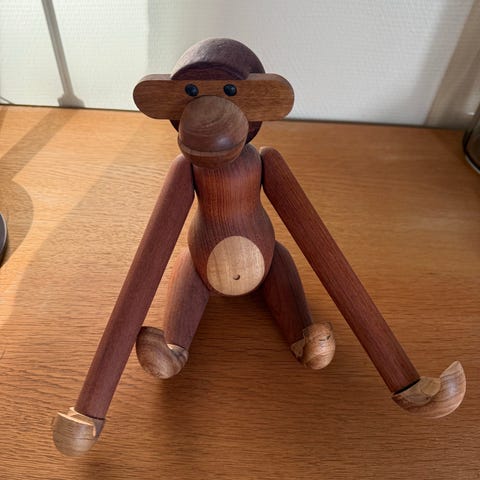 Kay Bojesen Abe af teak, med stempel på bagdelen, og med en højde på ca 32 Cm i siddende stilling.