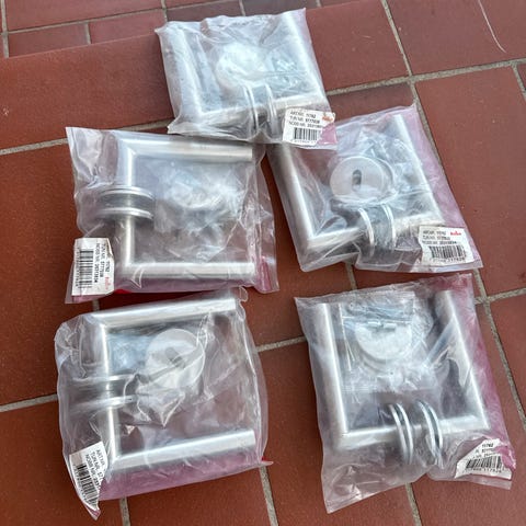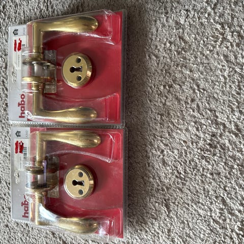 Habo dørgreb inklusiv nøgle sæt i rustfri stål. Sættet indeholder dørgreb, nøgle og øvrige nødvendige monteringsdele. Egnet til montering på døre og sikrer funktionel adgangskontrol.