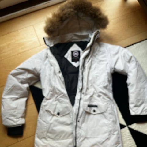 Canada Goose Vinterjakke i størrelse XS til kvinder. Jakken er sort og fyldt med dun, hvilket giver isolering. Designet til at holde på varmen i kolde vejrforhold.