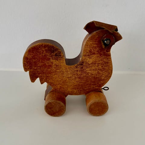 To haner i træ. Bevæger sig når man trækker i kuglen.