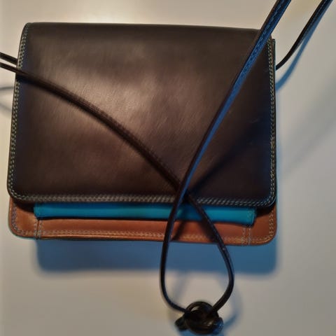 Mywallit skuldertaske/crossover i brun læder med mintfarvet foer. Fået i gave men aldrig brugt.