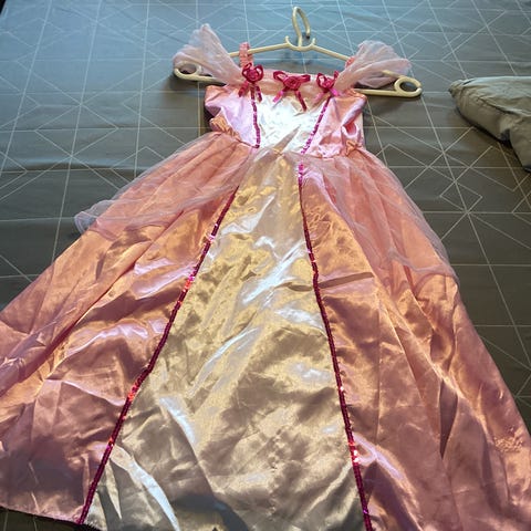 Flot hjemmesyet kjole til udklædning som prinsesse. Kjolen kan justeres og bruges i lang tid. Pigen på billedet 4 år.