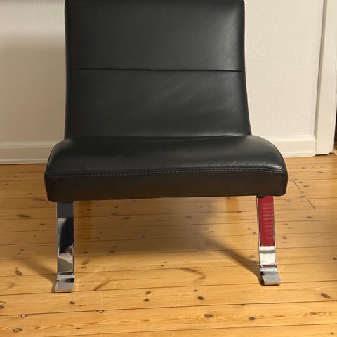 SUPER FLOT LÆNESTOL/LOUNGESTOL I BEIGE LÆDER MED STILRENT CHROM STEL .
