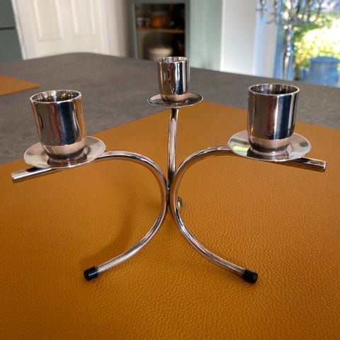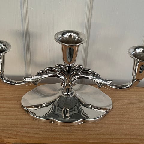 Flot vintage lysestage i pletsølv med spiralformet skaft og smukt ornamenteret fod.