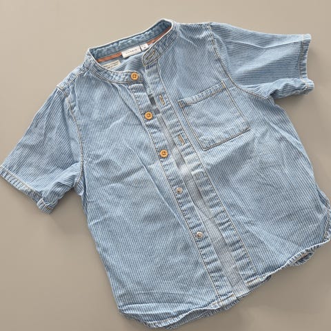 Name it Skjorte til dreng i størrelse 128. Skjorten er lavet af bomuld og har en blå ternet farve.
