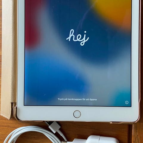 iPad Air 2 med 32 GB lagerplads i guld. iPad’en fungerer som den skal.