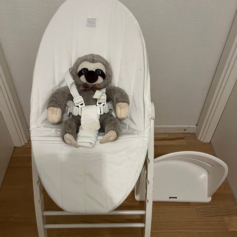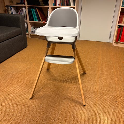 BabyDan højstol i sort. Stolen er designet til børn og har en robust konstruktion. Egnet til brug ved måltider og andre aktiviteter, hvor barnet skal sidde sikkert.