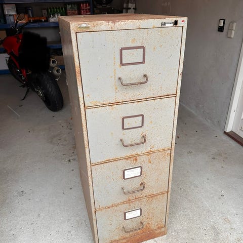 Arkivskab i stål, grå, med 5 skuffer, b x d x h: 1018 x 681 x 362 mm