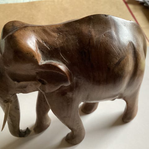 Sæt bestående af to elefantfigurer lavet i træ. Begge figurer er brune og har detaljeret udskæring. Kan anvendes som dekorative elementer i hjemmet eller kontoret.