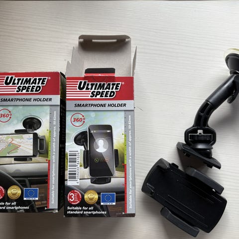 Holderen er designet til at kunne fastgøres og justeres efter behov, hvilket gør den velegnet til brug i bilen.