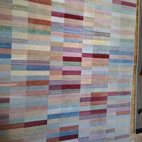 Velvet Ocean er et håndvævet gulvtæppe fremstillet af viskose og bambusgarn. Tæppet er i god stand, da det nærmest ikke er blevet brugt.