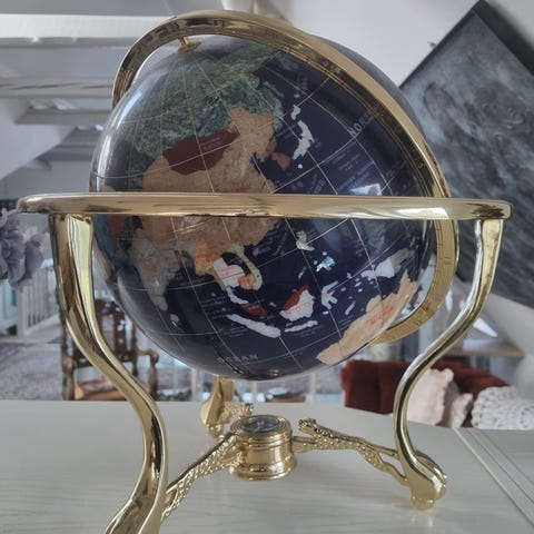 Globus sort og guld 25 cm høj - 20 cm i diameter. Står som ny uden skrammer.