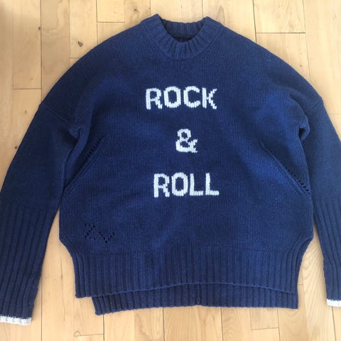 Yndig håndstrikket Laura Dalgaard Moon Child vest i mohair og angora med måne, planeter og stjerner.
