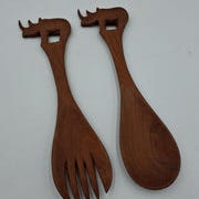 Super flot håndskåret salat-bestik sæt i exotisk afrikansk træ-sort