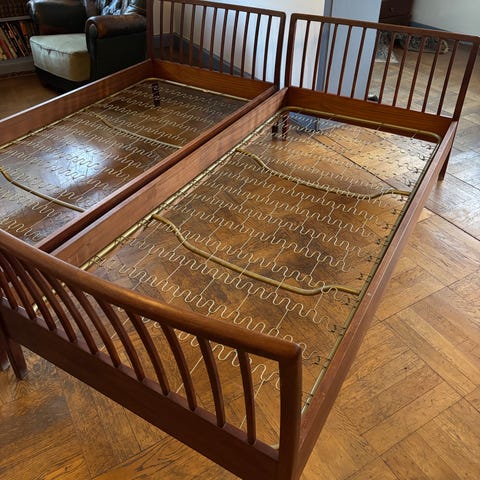 2 teaktræ senge med skuffe til sengetøj mm - samlet pris 2000kr