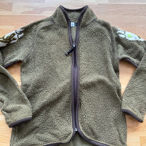 Molo fleecejakke i størrelse 152 til børn, unisex model. Jakken har et multifarvet blomsterprint og er lavet af fleece materiale, som giver varme og komfort. Jakken har ribkanter ved ærmerne og lynlås foran.