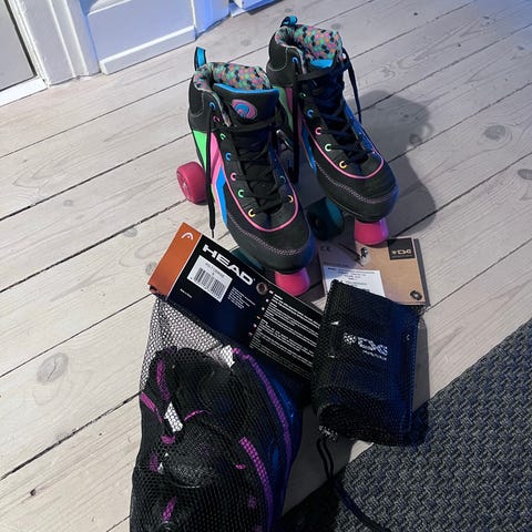 Rigtig fine, fejler intet. Brugt 5-10 gange udendørs i tørt vejr, sælges fordi jeg købte skateboard i stedet. Taske medfølger (se småfejl på billedet - har ikke forsøgt at fjerne plet)