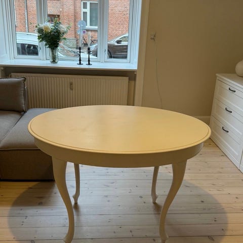 Malet spisebord, ben kan skrues af. Kom også gerne med et bud