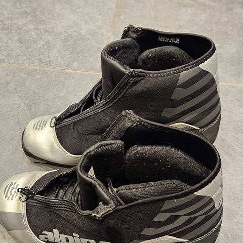 Alpina T10 langrendsstøvler i størrelse 36. Farven er sort med røde detaljer. Støvlerne er udstyret med Thinsulate isolering, hvilket giver varme og komfort under brug. Materialerne inkluderer syntetisk overmateriale, foring og sål designet til langrend.
