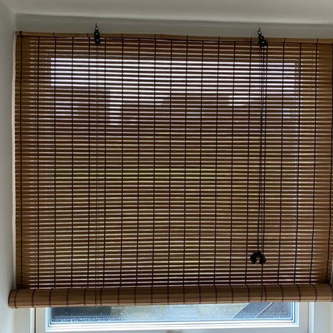 Sælger disse to bambusgardiner som hver især måler 100x180 cm. Nypris samlet set: 1016 kr.