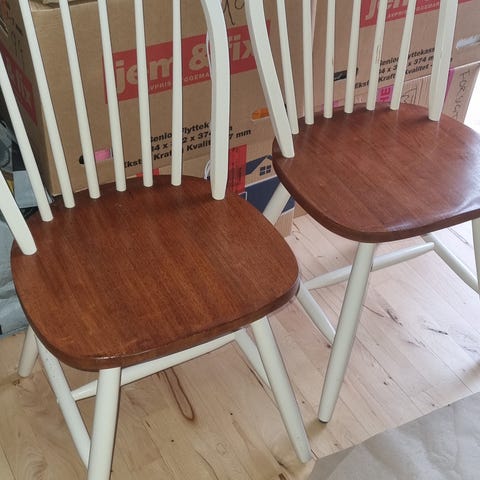 Disse stole har stået i vort vindfang / hall som besøgsstole og derfor meget lidt brugte og sælges kun pga flytning til langt mindre plads ! komforten er fremragende : god siddehøjde og rygstøtte : Pris er pr stk 550 KØB BEGGE FOR 950 SE og PRØV DEM FØRST !!!