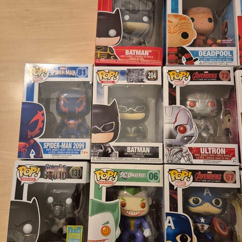 Figurerne er i perfekt stand indeni, men vær opmærksom på, at flere af kasserne har fået skader under opbevaring. Især de to Joker-figurer og Harley Quinn har store rifter/trykmærker på æsken. De øvrige har almindeligt hyldeslid. Priserne er sat skarpt derefter.