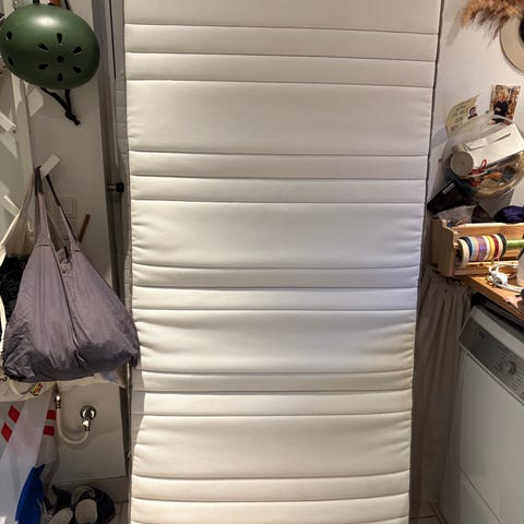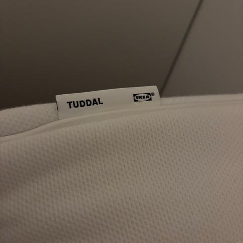 IKEA topmadras ("Tuddal") med skumkerne og betræk i lys farve. To stk. med mål 90 x 200. Fremstår helt nye men har været brugt i kort periode i sommerhus.