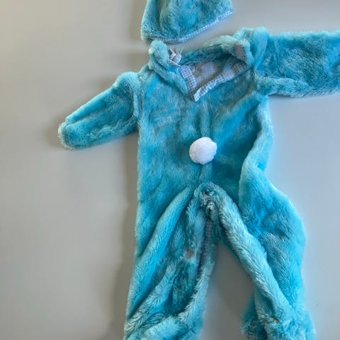 Kaninkostume (12-18 måneder). Få pletter på forsiden, som givetvis kan vaskes af.