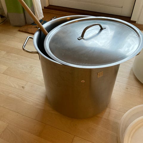 Rustfri stål gryde 50 liter med aftapningshane incl filter samt aftagelig bundfilter (falsk bund).