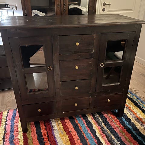 Beautiful and well loved with visible marks on the top & one inside the cupboard. Cat not included!