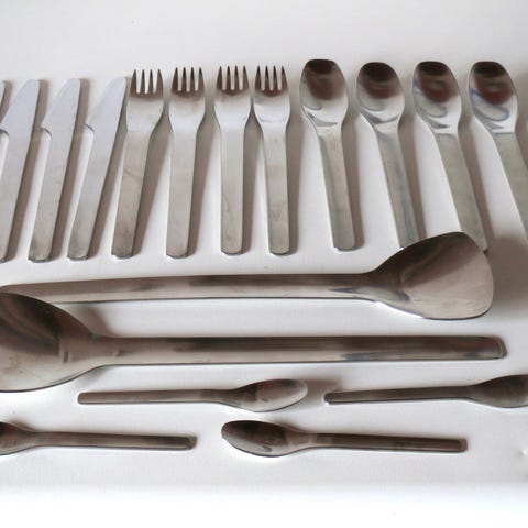 Erik Magnussens bestik i rustfrit stål, designet i 1995, er et udtryk for Erik Magnussens elegante og minimalistiske design. Den satinpolerede overflade og moderne stil skiller sig ud med sine let konkave kurver på en enestående måde.