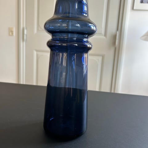 Majgrøn / antikgrøn glasvase, påsat segl; "Ansigt”, angiveligt designet af Jacob E. Bang for Kastrup Holmegaard Glasværk.