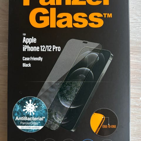 PanzerGlass skærmbeskyttelse til Apple iPhone 12 og iPhone 12 Pro. Beskytter skærmen mod ridser og stød med hærdet glas. Passer til specifikke iPhone-modeller for optimal pasform.