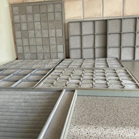 5 stk smykke bakker - lysegrå indeni og mørkegrå udenpå - til halskæder og ørestik og vedhæng - med synlige brugsspor - se billeder. - og der er sat tape på nogle hjørner. Se billeder Mål : 32,2 x. 28,2 og 2,5 cm. Og 32,2 x 28,2 x4 cm. - Kan sendes for 57 kr