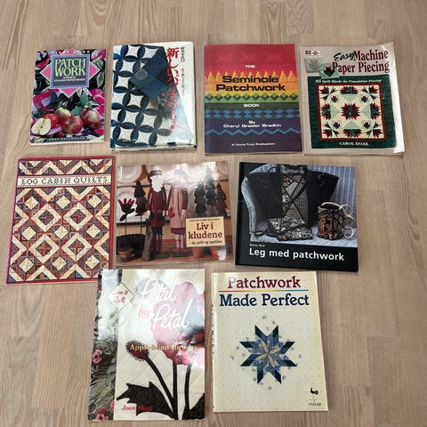 Sælger en smuk og inspirerende samling af patchwork- og quiltingbøger – i alt ca. 18 stk.