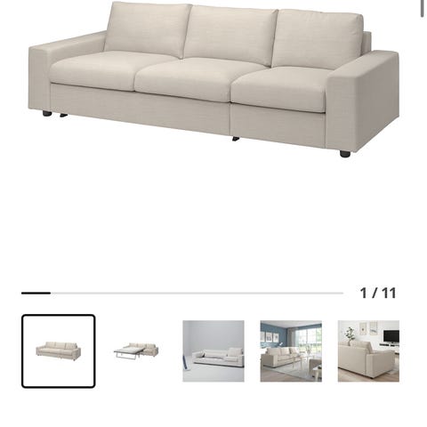 3 personers vimle sofa i hallarp beige - nye hynder og betræk medfølger!
