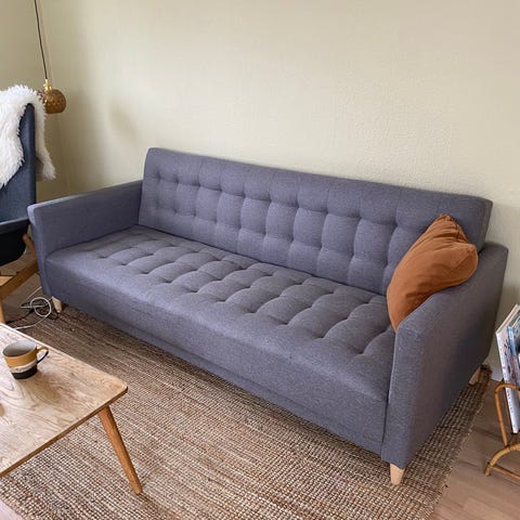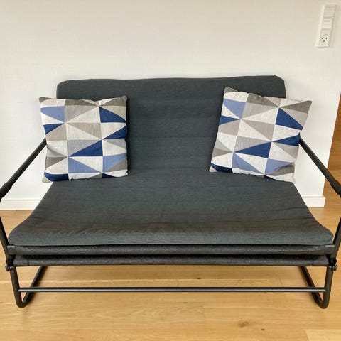 Skøn sovesofa fra IKEA modellen hedder Asarum. Den måler 135cm i bredden 194cm i længden. Den er nem at slå sammen og har et godt opbevaringsrum under sengen.