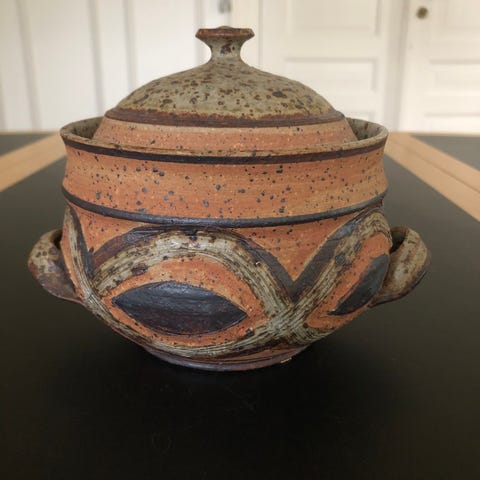 Fin skål i keramik stentøj af Ester Gedde Højland. Munding er firkantet med runde hjørne. Flot stand