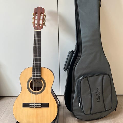 MSA børneguitar/begynderguitar, 1/4 størrelse (anbefalet til ca. 4-6 år), længde ca. 78 cm. Taske med bæreremme samt guitartuner medfølger.