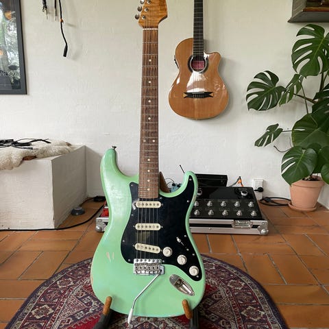 Guitaren har kun været brugt hjemme - og er som ny.