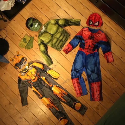 Sej Transformer-kostume med indbygget muskler. Str. 2-4 år (98/104). Brugt til en enkelt fastelavn.