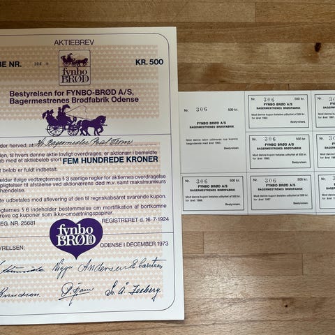 Antikke indrammede aktiecertifikater i træramme